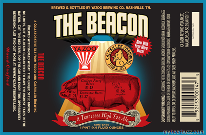 Today we get to see the 2nd batch of the Yazoo brewing / Calfkiller Brewing co-brewed The Beacon. This beer is brewed in protest of the high taxes placed on breweries in Tennessee and it will be packaged in 750ml bottles. The Beacon uses smoked wheat and now it comes with “even more taxes.”