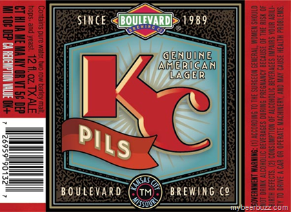 Today we get to see the 12oz bottle label for Boulevard Brewing KC Pils Genuine American Lager. This beer is named after Kansas City and 1% of proceeds benefit local charities.
