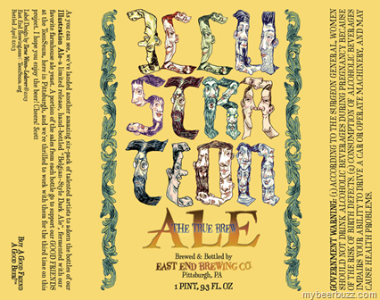 Today we get a peek at the next release of East End Brewing’s Illustration Ale. This series of limited edition (hand bottled) beers featured labels from various artists. It sounds like we will see six version of the label for this Belgian-style Dark Ale with farmhouse yeast. This design is by Ilene Winn-Lederer and a portion of the proceeds will benefit ToonSeum.org. Illustration Ale (The True Brew) will be packaged in 25.3oz bottles.