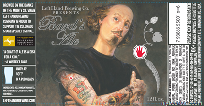 Today we get to see the new Left Hand Brewing Bard’s Ale. This beer is brewed on the banks of the mighty St. Vrain in support of the Colorado Shakespeare Festival. Bard’s Ale will be packaged in 12oz bottles and no word on ABV or release dates so stay tuned.