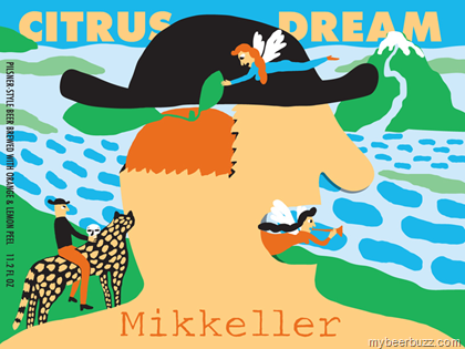 Another great Keith Shore label coming today from Mikkeller for Citrus Dream PIlsner-style beer brewed with orange & lemon peel. This beer is brewed & packaged in 11.2oz bottles by DeProef, it will come in at 5% ABV and I’m hoping Keith or someone can explain the man on the leopard carrying a skull?!?