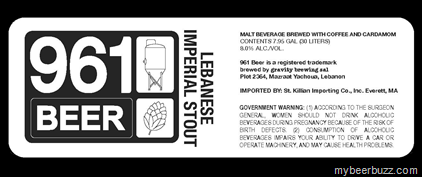 Here’s a peek at the keg label for 961 Beer Lebanese Imperial Stout. This new brew comes from Lebanon, this is a keg label only and the beer is brewed with coffee and cardamom. Look for Lebanese Imperial Stout to come in at 8% ABV.
