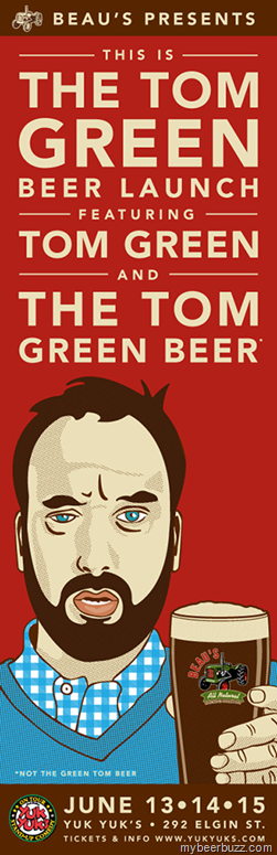 OTTAWA – (May 16, 2013/mbb/) Beau’s All Natural Brewing will be collaborating with Canadian actor and comedian Tom Green this spring to create The Tom Green Beer. The official launch of the Tom Green Beer in the nation’s capital will include five stand-up comedy shows featuring Tom Green, to be held at Yuk Yuk’s on Elgin St. in Ottawa June 13-15.