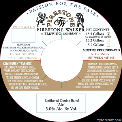 This is a keg label, but today we get a peek at Firestone Walker Unfiltered Double Barrel Ale. This beer will come in at 5% ABV.