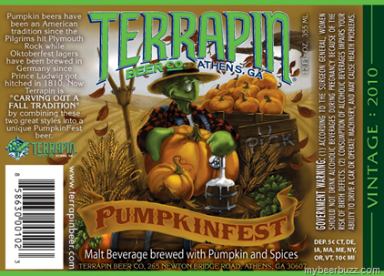 Terrapin is thinking fall with the approval of their Pumpkinfest label. This malt beverage brewed with pumpkin & spices is listed as Vintage 2010. Pumpkinfest is a Pumpkin Beer / Oktoberfest blend and it will be packaged in 12oz bottles. .