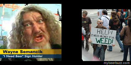 According to reports, a Times Square panhandler holding a "I Need Money for Weed" sign, also known as the area's"weed" man, was arrested for stabbing Times Square's "beer" man, who carries a similar sign reading "I Need Beer."