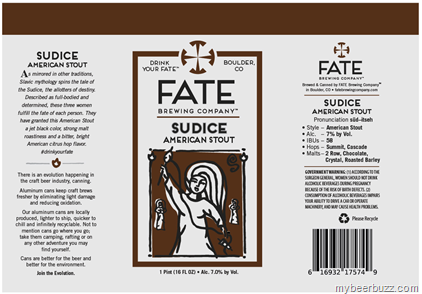 Today we get a peek at the new 16oz can labels coming from Fate Brewing for Sudice American Stout & Parcae Belgian Style Pale Ale. Sudice is named from the “allotters of destiny” in Slavic tradition. Sudice uses summit & cascade hops and it will come in at 7% ABV & 58 IBU. Parcae is named after the “three female embodiments” in Romany mythology who determine “Fate.” Parcae uses Willamette, & Styrian Goldings hops and it will come in at 20 IBU and 5% ABV.