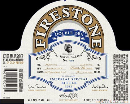 Today we get to see the label for Firestone Walker Proprietor’s Reserve Series No 1 - Double DBA. Our pal Matt Brynildson is bringing us this Imperial Special Bitter with a 2012 vintage. Double DBA will be packaged in 22oz bottles and come in a 29 IBU and 12% ABV.