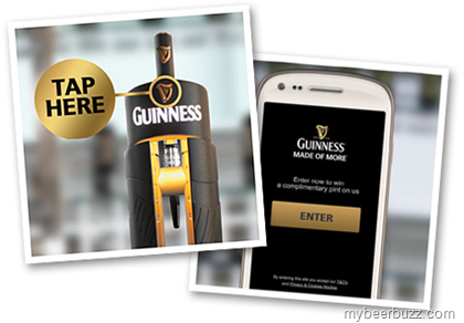 To participate, drinkers at any of twenty pubs participating in the promotion tap their phone to the harp logo on the Guinness bar tap and hit the on-screen enter button to enter the draw. "If you win, enjoy a pint on us," says Guinness. "Unfortunately this offer is not open to iPhone users."