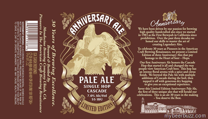 imageHappy 30th Anniversary to Mendocino Brewing Co.  To honor the special occasion, Mendocino will be releasing their 30th Anniversary Ale.  This limited edition beer will be a single hop Pale Ale using Cascade hops.  This will be the first of three Anniversary Ales, it will be packaged in 22oz bottles and come in at 55 IBU and 7% ABV.