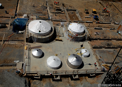 Our brewhouse configuration in Chico is comprised of a mash tun in which grains are steeped in hot water and the conversion from starch to sugar begins; a lauter tun, which separates sweet wort from the solid barley husks; a kettle for boiling and concentrating wort, and for adding the bitter hops whose flavor and aroma balance the sweetness of the wort; and, lastly, a whirlpool to collect heavy proteins and solids while the hot liquid moves on to fermentation.