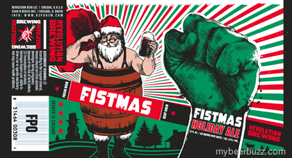 This morning we get to see the 2013 holiday ale coming this winter from Revolution brewing.  This is Fistmas Holiday Ale, it will be packaged in 12oz can and come in at 6.1% ABV.