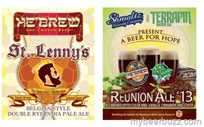 Clifton Park, NY - August 21, 2013/mbb/ - Shmaltz Brewing Company is all about collaborations this fall with the limited-edition release of two sensational new offerings: St. Lenny's® - The Immaculate Collaboration parallels Reunion Ale '13 - A Beer for Hope®. Shmaltz partners with Missouri's Cathedral Square Brewing Company for the debut release of St. Lenny's®, a Belgian Style Double Rye India Pale Ale. Shmaltz teams up for the third year-in-a-row with Terrapin Beer Company and Alan Shapiro (founder of SBS Imports) to create Reunion Ale '13, a Dark Imperial Brown Ale Brewed with Cocoa Nibs, Vanilla, Cinnamon and Coffee. A portion of the proceeds from Reunion Ale '13® is donated directly to The Institute for Myeloma and Bone Cancer Research. National fundraising events will occur throughout the summer and fall; events to be announced on Shmaltz's event calendar at www.shmaltzbrewing.com.
