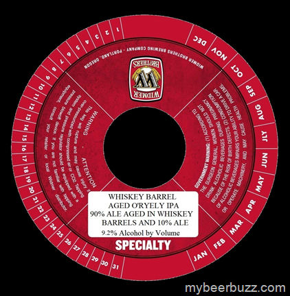 This is a keg-only specialty beer from Widmer Brothers and it is an interesting blend. This beer is called Whiskey Barrel aged O’Ryely IPA and it is 90% ale age din Whiskey barrels and 10% Ale. Look for this blend to come in at 9.2% ABV.