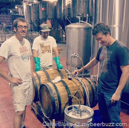 A quick photo coming from Oskar Blues in Brevard, NC showing off the kegging of Whiskey barrel aged Deviant Dales.  Stay tuned for more details….this from Oskar Blues: