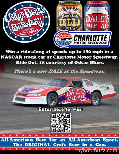 If you’re a race fan, here’s your chance to win a ride-along in a NASCAR stock car, and enjoy a CAN of Oskar Blues Brewery’s cold refreshing voluminously-hopped Dale’s Pale Ale or crisp gold medal winner Mama’s Little Yella Pils at the races.