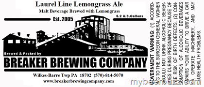 Today we get a peek at the keg label for Breaker Brewing Laurel Line Lemongrass Ale. We got to try this beer out in July and now with keg approval I suspect we may see more distribution in the future. Stay tuned.