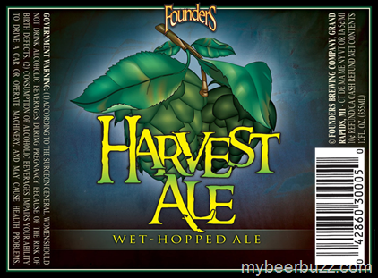 I’m excited to bring you the label for Founders Harvest Ale. This Wet-Hopped Ale will come to 12oz bottles and this batch will come in at 70 IBU and 7.6% ABV.