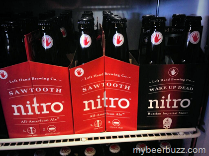 Left Hand Brewing launched their new widget-free Nitro Milk Stout Bottles in 2011. At GABF last night, Chris Lennert from Left Hand introduced two new additions to that will join Milk Stout in the nitro bottle line. Sawtooth All-American Ale (year-round in 6-Packs) and Wake Up Dead Russian Imperial Stout (released 2 or 3 times a year in 12oz bottle 4-packs--10.2% ABV). Stay tuned for release details.