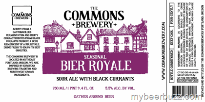 Bier Royale, modeled after the french cocktail Kir Royale, is a sour ale with black currants. First brewed as a popular draft-only beer for the Portland Fruit Beer Festival, the bottle conditioned version has a bright acidity from a house-grown Lactobacillus culture originally harvested from yogurt. Black Currants are added during primary fermentation to add additional acidity, fruitiness and a deep purple color to the final product. The process was catalogued very well by our friend Sanjay at http://www.notsoprofessionalbeer.com/2013/09/brewing-with-yogurt.html.