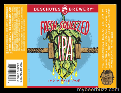 Here’s a peek at the new label for Deschutes Bond St. Series Fresh Squeezed IPA . This version will use Citra & Mosaic hops, it will be packaged in 12oz bottles and come in at 6.4% ABV.