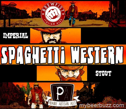Here’s a peek at the new label for the Prairie Artisanal Ales / Brewfist co-brewed Spaghetti Western Stout. This beer is an Imperial Chocolate Coffee Stout. According to Prairie, this Italian collaboration is coming soon.
