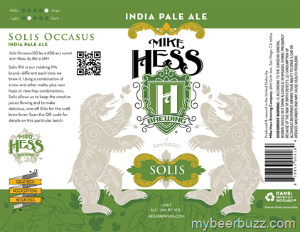 This morning we get to see the new 16oz cans coming from Mike Hess Brewing for Solis Occasus IPA. This beer is part of the rotating Solis IPA series and it will come in at 85 IBU and 7.5% ABV.