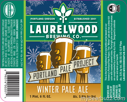 Today we have Laurelwood Brewing Portland Pale Project Winter Pale Ale. This is the first release in this new series of Pale Ales and it will be packaged in 22oz bottles and come in at 5.8% ABV.