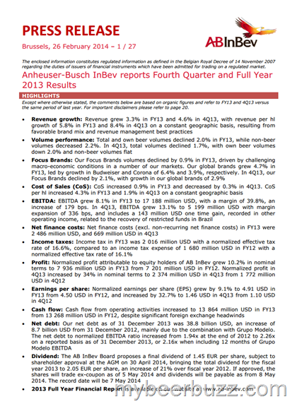 2013 Full Year Financial Report is available on our website at www.ab-inbev.com