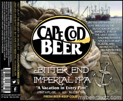 The Bitter End, Cape Cod Beer’s newest specialty release, is named for the nautical term “bitter end” which refers to the inboard end of the anchor rope. An Imperial IPA (India Pale Ale) by style, this beer packs massive amounts of hop flavor and aroma into a medium-bodied, unfiltered brew. Bitter End Imperial IPA was brewed in the tradition of the great Imperial IPAs of the West Coast, and packs a bit of a punch at 8.5% alcohol by volume and 90 IBUs.