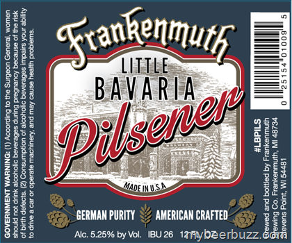 Today we get to see Frankenmuth Little Bavaria Pilsener. This beer will be packaged in 12oz bottles by Steven’s Point and it will come in at 5.25% ABV and 26 IBU. This beer will also adhere to the German Beer Purity laws. ![]()