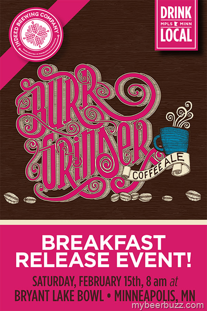 MINNEAPOLIS, MN – February 4, 2014/mbb/ – Indeed Brewing Company will release its 2014 Burr Grinder Coffee Ale at Bryant Lake Bowl on Saturday, February 15 when doors open at 8 am. "We wanted to do something a little different for the release of this beer," said Indeed Brewing co-founder Rachel Anderson. "Burr Grinder delivers an intense coffee punch, so we thought a breakfast release was the perfect introduction."