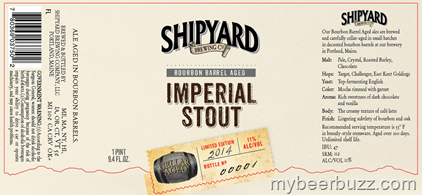 Here’s a peek at a new barrel-aged beer coming from Shipyard Brewing. This is Bourbon Barrel-Aged Imperial Stout and it will use Target, Challenger, East Kent Goldings hops as well as pale, crystal, roasted barley and chocolate malts. This beer will be packaged in 750ml bottles and come in at 11% ABV and 47 IBU.
