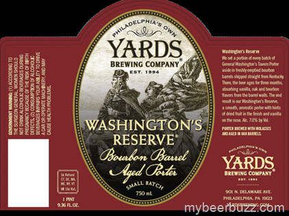 I’m excited to bring you a new brew coming to bottles from Yards Brewing. This is Washington’s Reserve and it is a Bourbon Barrel-Aged Porter. This beer begins life as General Washington’s Tavern Porter and it is then aged in Bourbon barrels for three months. This beer will be packaged in 750ml bottles and come in at 7% ABV.