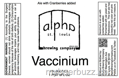 Here we have Alpha Brewing Vaccinium. This beer is an ale with cranberries added that is fermented with Pediocucus. Look for Vaccinium to be packaged in 22oz bottles and come in at 7% ABV.