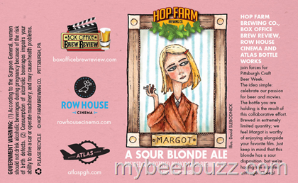 Here’s a great beer coming from Hop Farm Brewing in Pittsburgh, PA. This is Margot, A Sour Blonde Ale and it is a joint effort between Hop Farm Brewing, Box Office Brew Review, Row House Cinema and Atlas Bottle Works. Margot will be packaged in 22oz bottles for Pittsburgh Beer Week 2014.