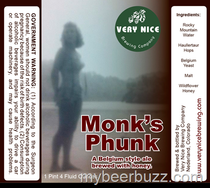 Sometimes I can’t resist a name and this one has it all…including a blurry photo. This is Very Nice Brewing Monk’s Phunk and it is a “Belgium” (not Belgian) Style ale brewed with honey. This beer uses “Hallertaur” Hops, “Belgium” (not Belgian) yeast, malt and wildflower honey. It’s also being packaged in 20oz bottles, and odd size for sure. I’d like to see this one in person.