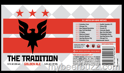 DC Brau is bringing together two of my favorite things….soccer & beer. Here we have The Tradition Golden Ale and it is brewed in conjunction with DC United Soccer. Look for the Tradition in 12oz cans and at 5% ABV…and as a bonus, the 2014 DC United schedule is actually ON the can!