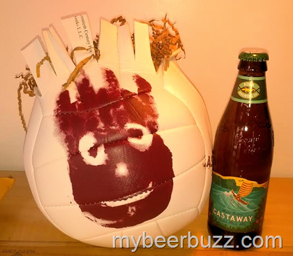 Before I go any further, I have to put it out there that this is perhaps the best media sampling kit I’ve ever received. Kona Castaway IPA arrived in the one and only “Wilson” from the movie Cast Away. However, this volleyball not only had the original Wilson and Cast Away (the film) logo, but also Kona branding and logos…and if that wasn’t enough, the ball was filled with crinkle cut paper, and the best part of all….two bottles of Kona Castaway IPA. As you can see in the photo, this was a unique and really cool media kit.