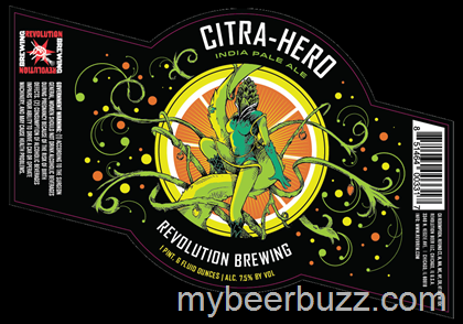 Here’s a great looking new label coming from Revolution Brewing for Citra-Hero IPA. This beer will be package din 22oz bottles and come in at 7.5% ABV.