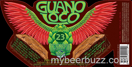 I’m excited to be the first to show you the upcoming Side Project #23 release coming from Terrapin. This is Guano Loco and it is a Chili Pepper Brownie Ale. This spicy and chocolatey beer will be packaged in 22oz bottles and come in at 8.6% ABV. Stay tuned for release details.