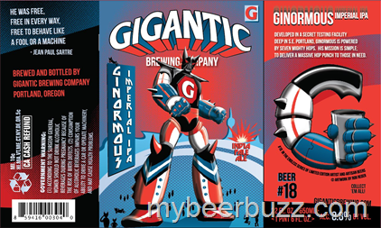 Here’s a peek at Beer # 18 in the “endless series of limited edition artist and artisan beers.” This is Gigantic Brewing Ginormous and it is an Imperial IPA that uses 7 varieties of hops. Look for this brew to be packaged in 22oz bottles and come in at 8.8% ABV.