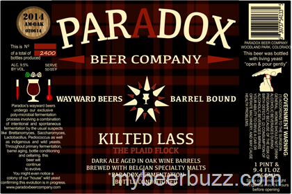 Here’s yet another unique brew coming from Paradox Beer. This is Kilted Lass and it is a dark ale aged in wine barrels that is brewed with Belgian specialty malts. This beer will be packaged in 750ml bottles and come in at 9.5% ABV. .