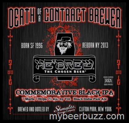 Now brewing exclusively in Clifton Park, NY -- Wednesday, May 7, 2014 -- A commemorative beer to mark Shmaltz Brewing's transformation from 17 years as a contract brewer to their new life at their very own Upstate New York brewery, DEATH OF A CONTRACT BREWER® becomes a year-round offering within Shmaltz's award-winning portfolio. Death of a Contract Brewer® is brewed with 7 Malts (specialty 2-row, munich, wheat, crystal rye, chocolate, pale chocolate, kiln coffee) and 7 Hops (cascade, citra, summit, crystal, amarillo, ahtanum, chinook), and comes in at 7% Alc. Death of a Contract Brewer® is now nationally available across 37 states in 22 oz. bottles and a limited amount of draft at select bars.