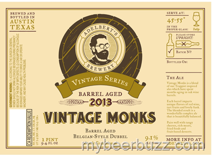 Adelbert’s Brewery (Austin, TX) - Vintage Series Barrel-Aged 2013 Vintage Monks (750ml bottles, 9.1% ABV).