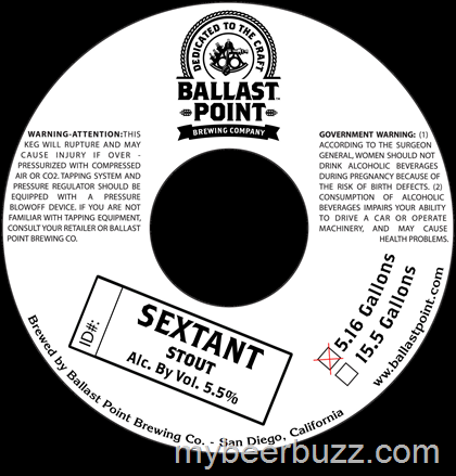 Ballast Point - Sextant Stout - Keg label - 5.5% ABV.