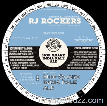 Today appears to be hoppy keg-label release day….and here we have another. This is RJ Rockers Hop Quake IPA and it will come in at 6.2% ABV.
