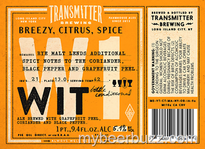Transmitter Brewing (Long Island, NY) - Wit (750ml bottle, 5.1% ABV, 21 IBU).