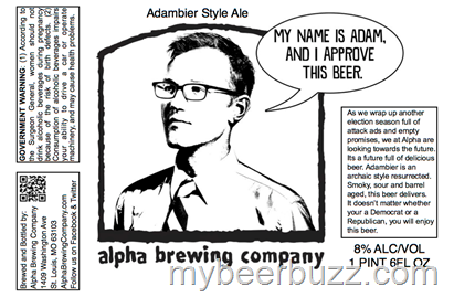Here we have Alpha Brewing Adambier Style Ale. This “smoky, sour, barrel-aged beer will be packaged in 22oz bottles and come in at 8% ABV.