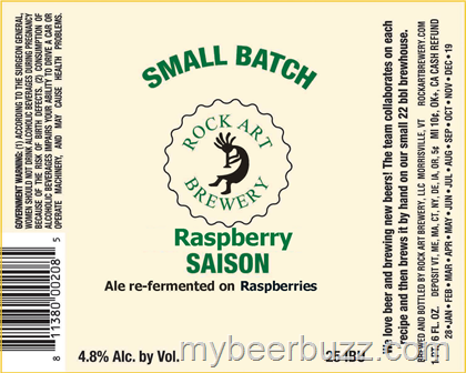 Here’s the packaging for Rock Art Small Batch Raspberry Saison. This beer is brewed on the Rock Art small 22bbl brewhouse, it will be packaged in 22oz bottles and come in at 4.8% ABV and 25 IBU.